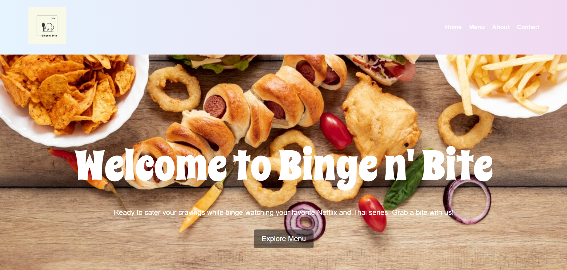 A simple and playful layout template for a food and beverages business, built using HTML, CSS and JavaScript. With its unique Google Fonts integrated and also employs a vibrant combination of pink, light blue and purplish color gradient to achieve an inviting and trendy look.