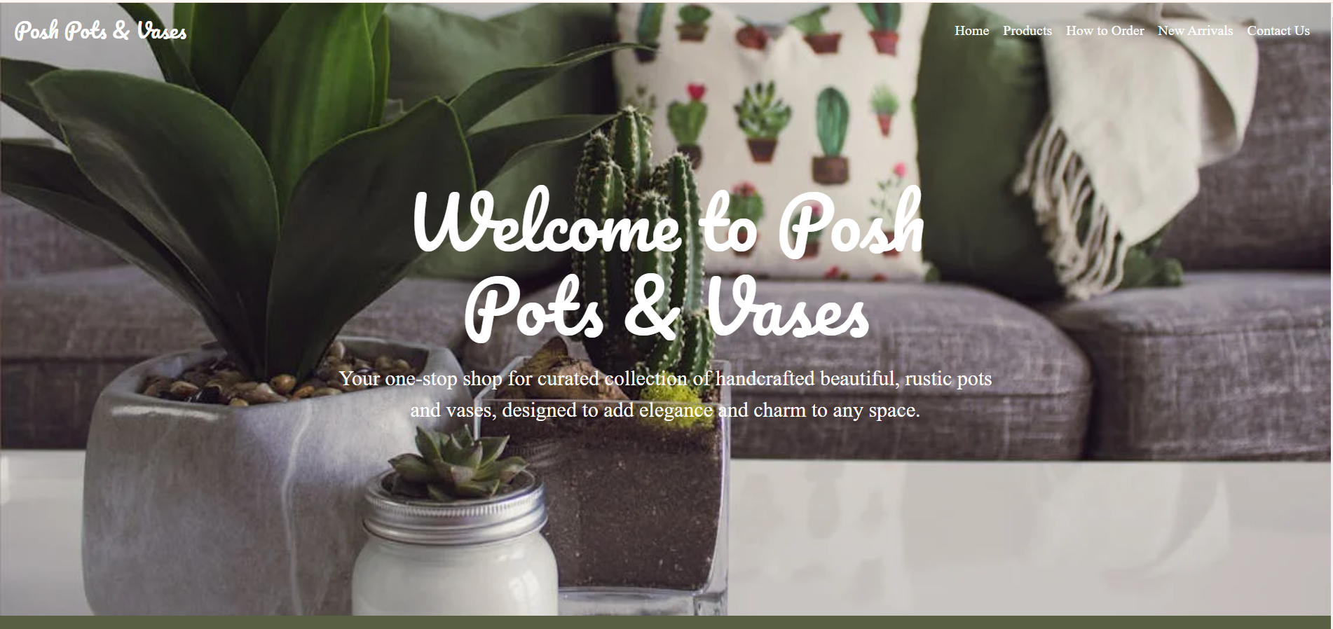 A sleek and aesthetic design template for a fictitious pots and vases business, coded with HTML, CSS, Bootstrap and JavaScript. It features a GSAP-powered carousel and a refreshing modern look in green and white colors.